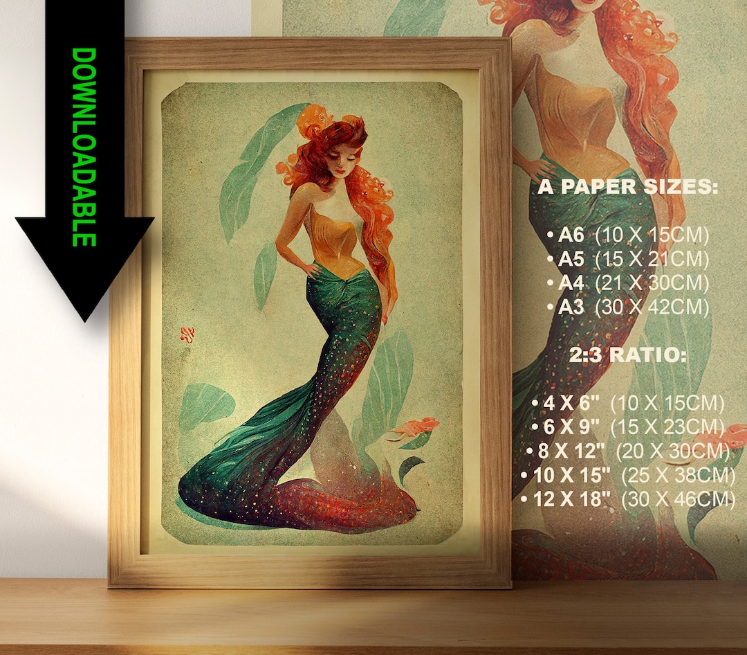 Vintage Mermaid Download Printable, Retro Vintage Mermaid Print Instant Download JPG Printable by divineandplayart
