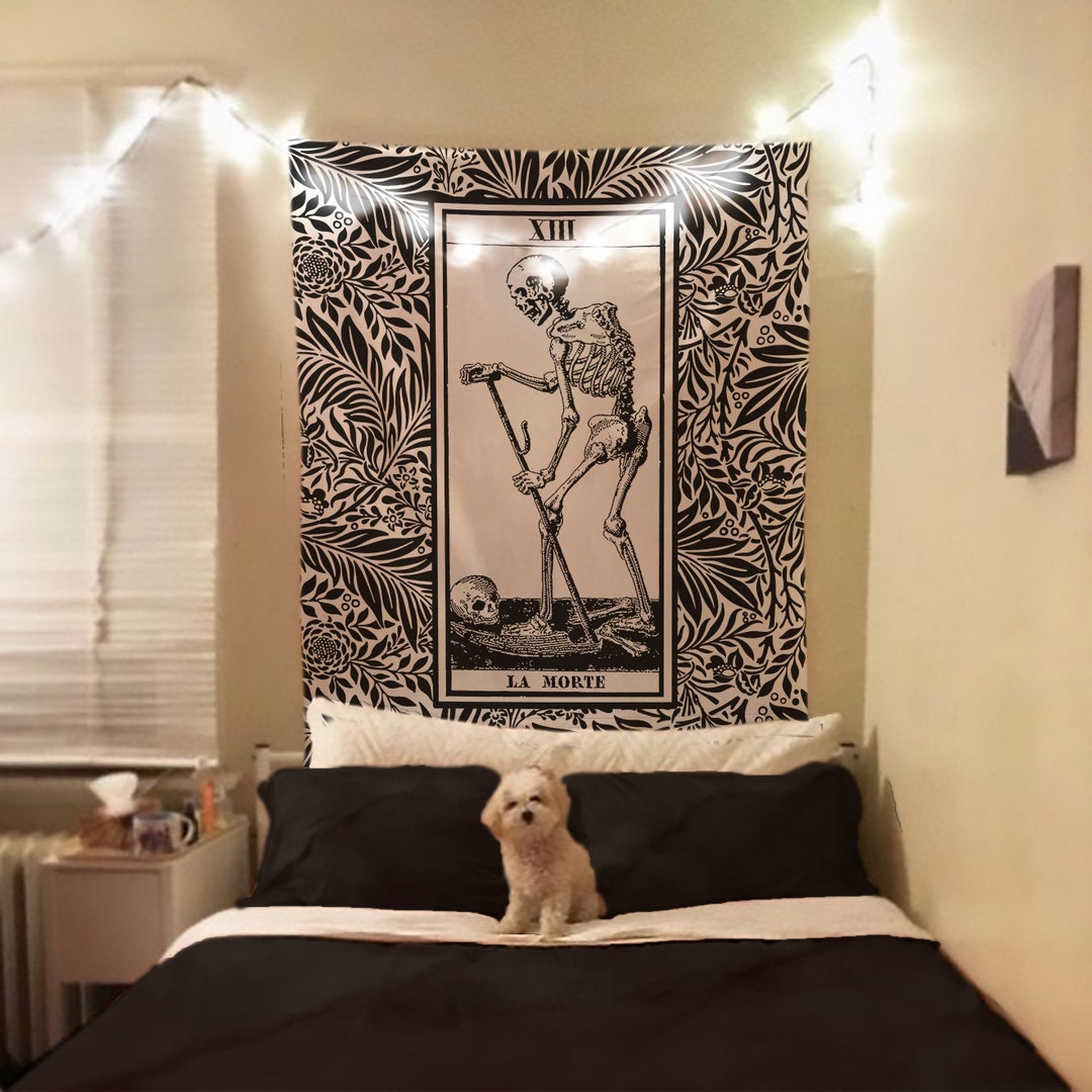 La Mort Tarot of Marseille Death Tarot Card Black and Gray Tapestry - Black & White by Printagrams