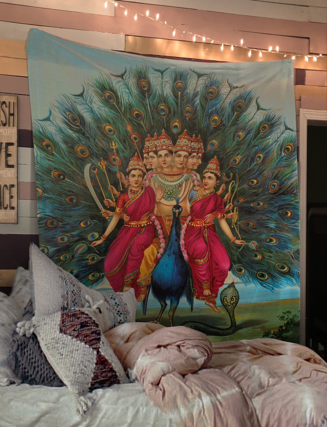 The Hindu god of war Murugan Riding a Peacock Tapestry
