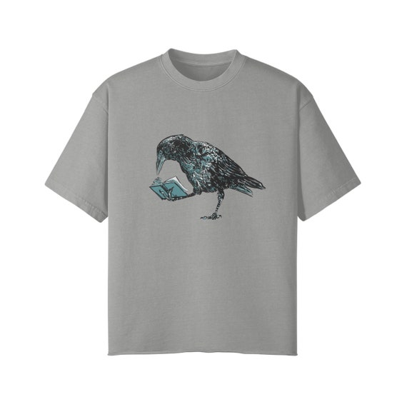 Raven Shirt - Book Lover tshirt - Oversized Streetwear - Gothic Shirt for Men or Women - Raven or Crow Reading a Book by divineandplayart
