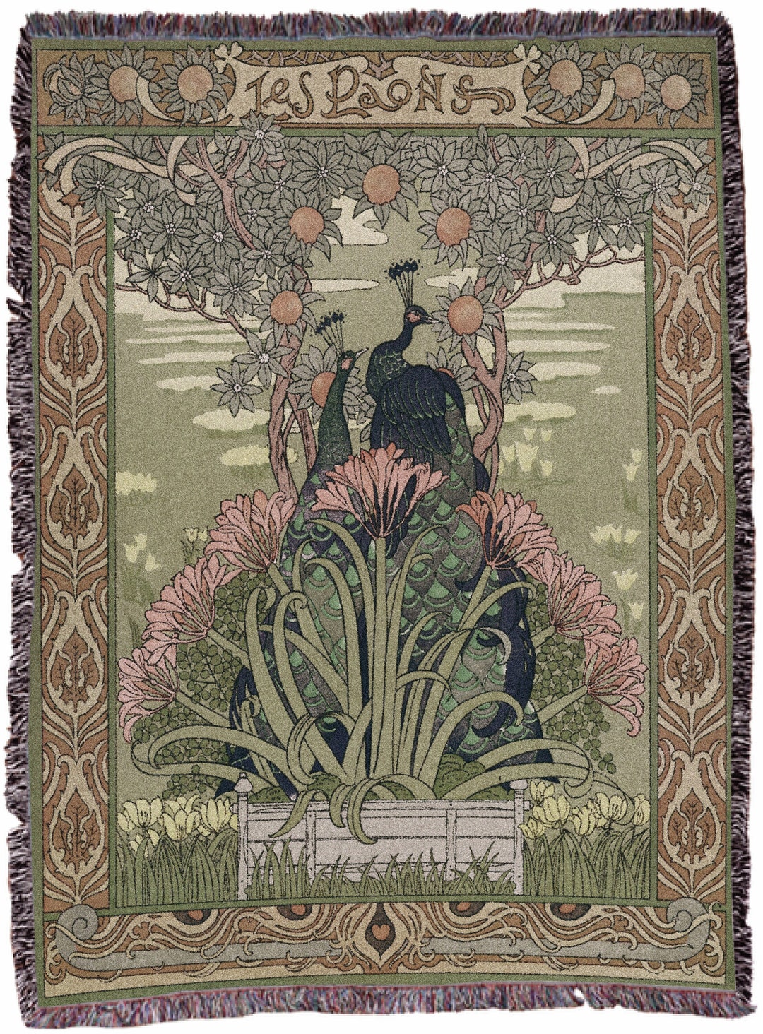 Two Peacocks Woven Blanket, The Peacocks Blanket Art Nouveau Blanket by divineandplayart