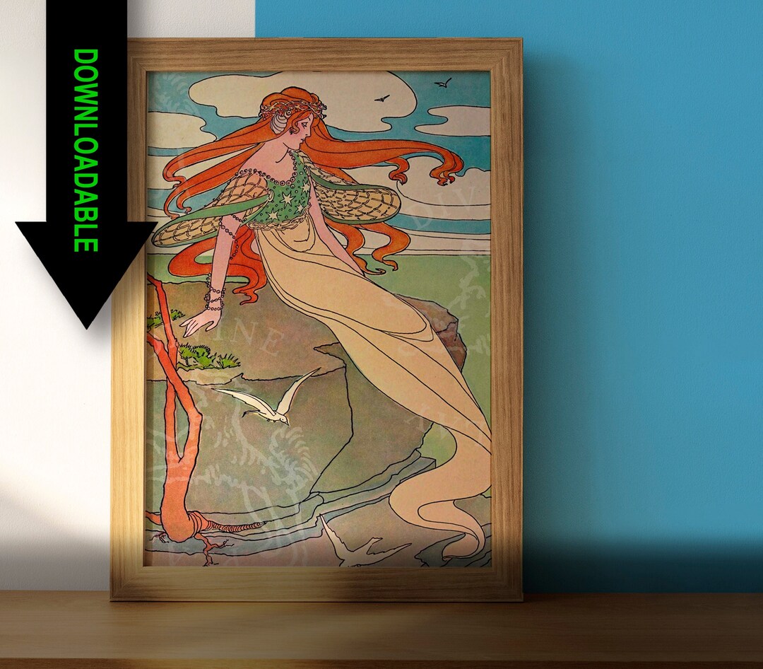 Vintage Mermaid Art - Moon Princess Download Printable High Quality Art Nouveau Instant Download Printable by divineandplayart