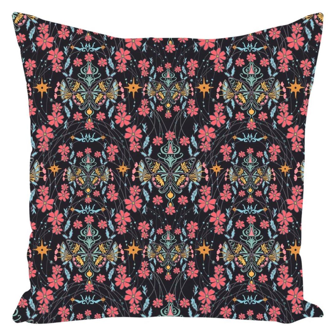 Boho Pillow - Extra Large Floor Cushion - Pink and Black - Butterfly Pattern - with Zipper - Insert and Cushion by DesignBohemian
