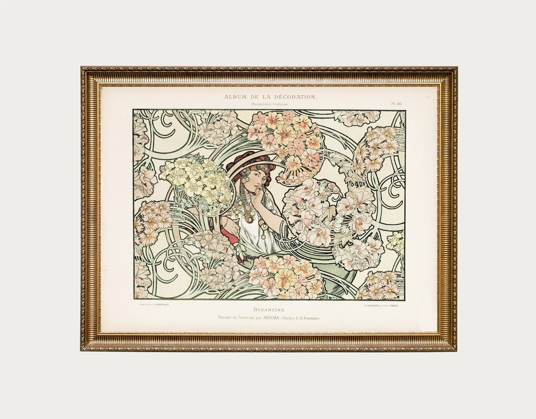 Mucha Original - Art Nouveau Poster Floral Print Bohemian Print Large Artwork Mucha - Beige, Pink, and Green - Paris Vintage by DesignBohemian