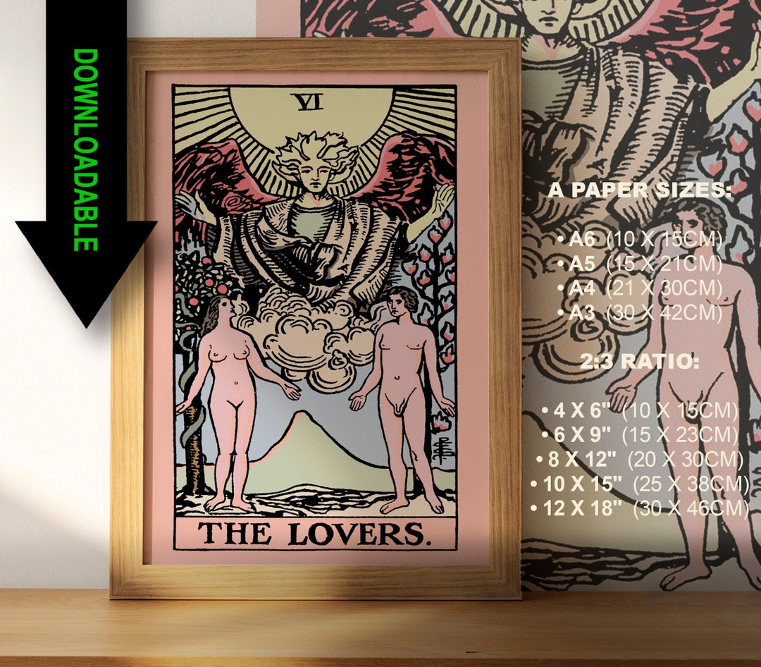 The Lovers Tarot Card Download Printable High Quality Tarot Card Pastel Tarot Instant Download JPG Tarot Card Printable by divineandplayart