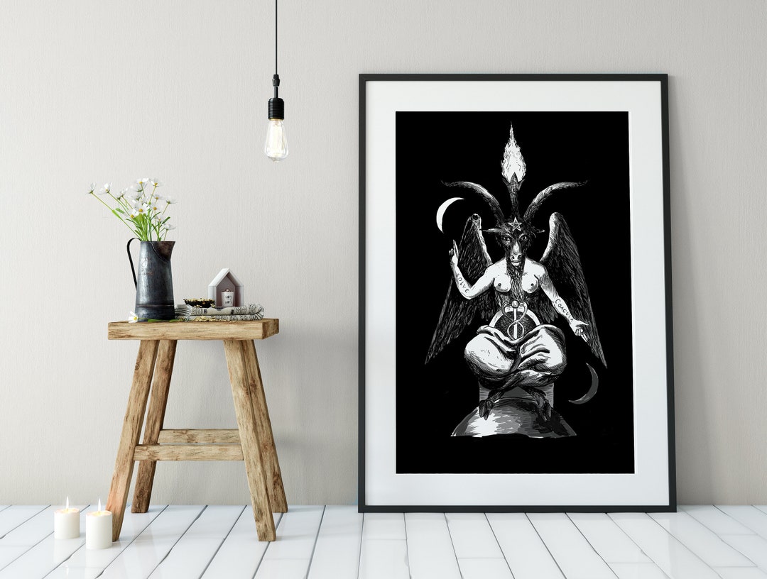 Baphomet, or the Horned Goat of Mendes, a creature that is half man, half goat. Baphomet originally represented the balance between good and evil, male and female, and human and animal; however, more recently, this figure has been linked to the occult and has become a scapegoat for all things considered ‘evil’.