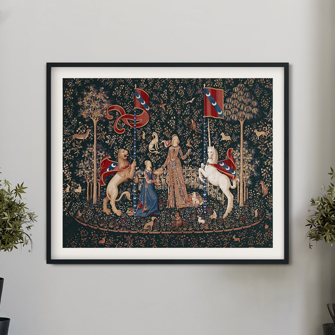 Medieval Unicorn Print - Taste - Lady with Unicorn Dark Green - Medieval Art - Flora - 1500s by DesignBohemian