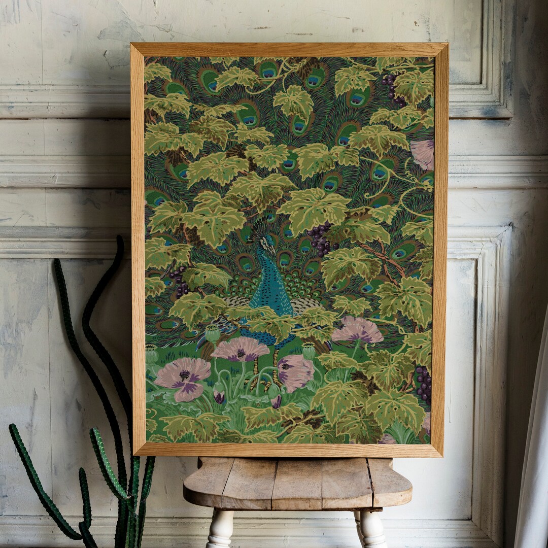 Vintage Peacock Print - Green and Blue - Nouveau Flower Print - Bohemian - Print Large Artwork - Vintage Wallpaper - Floral by DesignBohemian