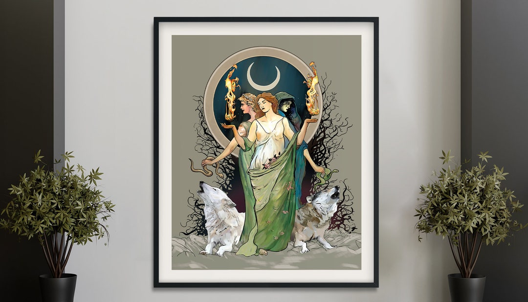 Moon Goddess Hecate Poster- Wiccan Tapestry - Hecate Witchy Print, No Frame