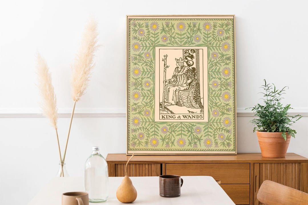 The King of Wands Print - Vintage Shabby Chic - Tarot Poster - Nouveau Tarot Card Poster - Green by DesignBohemian