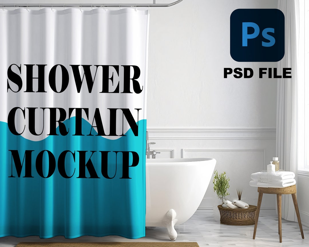 Shower Curtain Mockup - Downloadable Room Scene PSD Shower Curtain Mockup - Instant Download PSD Photoshop file by divineandplayart
