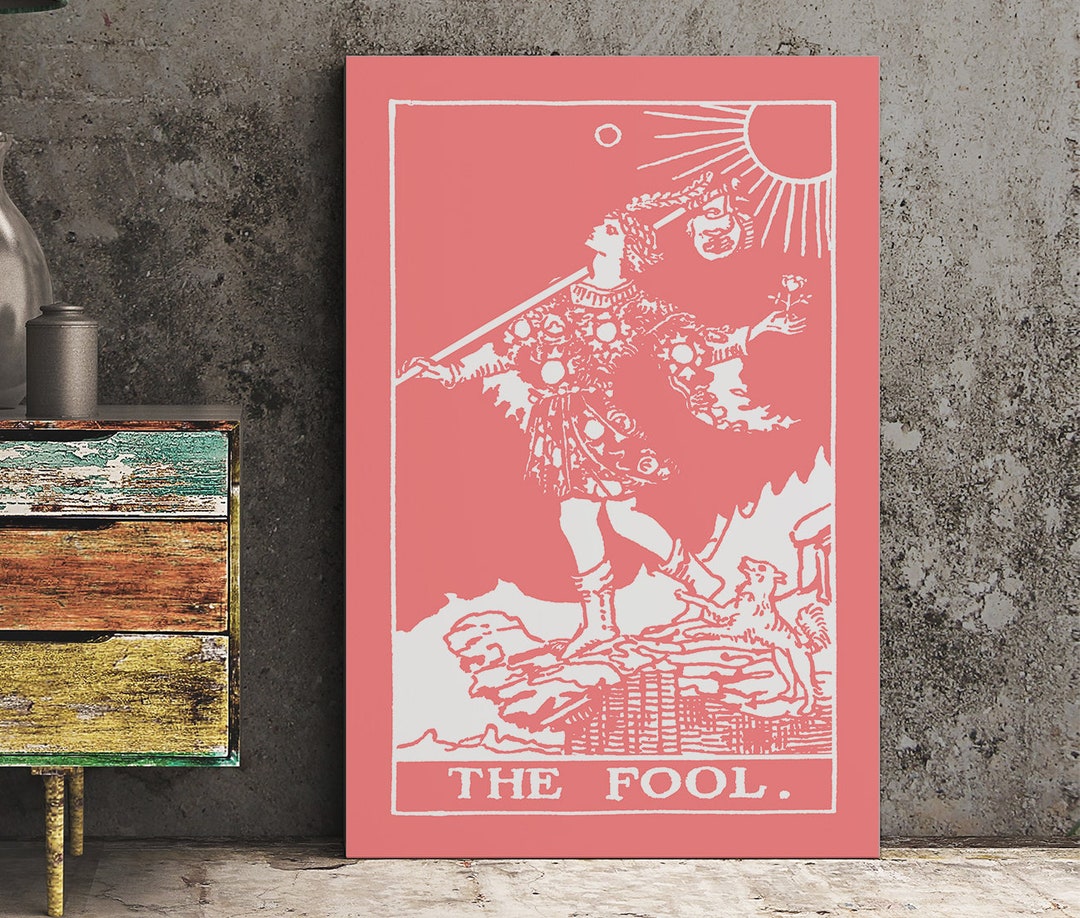 The Fool - Tarot Card Print - The Fool Card Pink and White Poster, No Frame by Printagrams