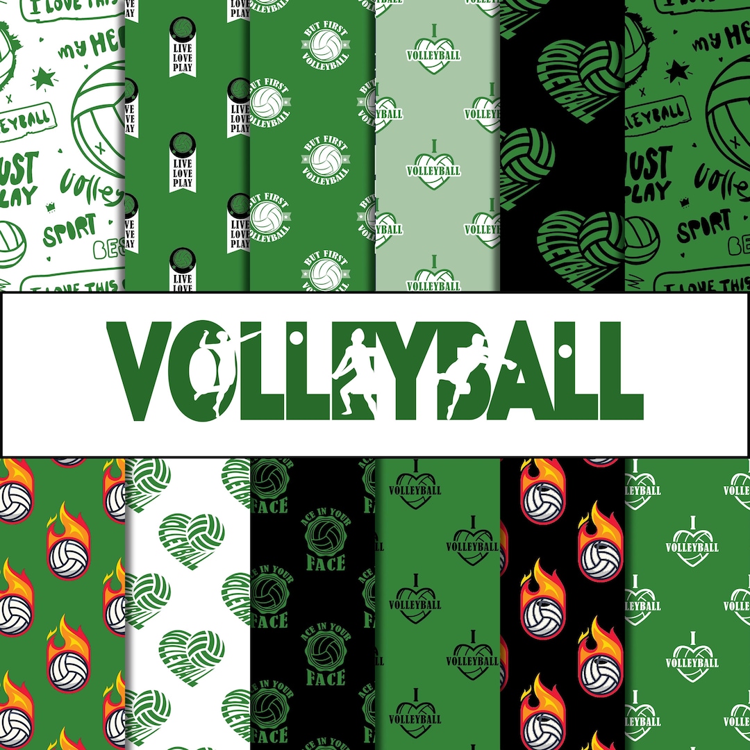 Volleyball Scrapbook Paper - Green - Digital Download - 20 Different Patterns - Green, Black, White - Volleyball Patterned Paper