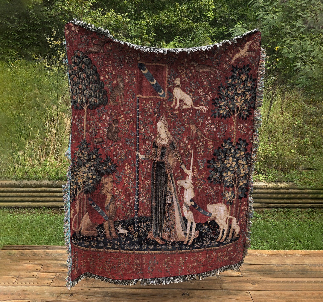 Woven Cotton Tapestry/Throw Blanket - Lady With Unicorn Touch Blanket by Printagrams