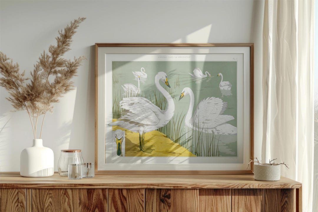 Moody Vintage Print - Swans - Nouveau Artwork - Light Green by DesignBohemian