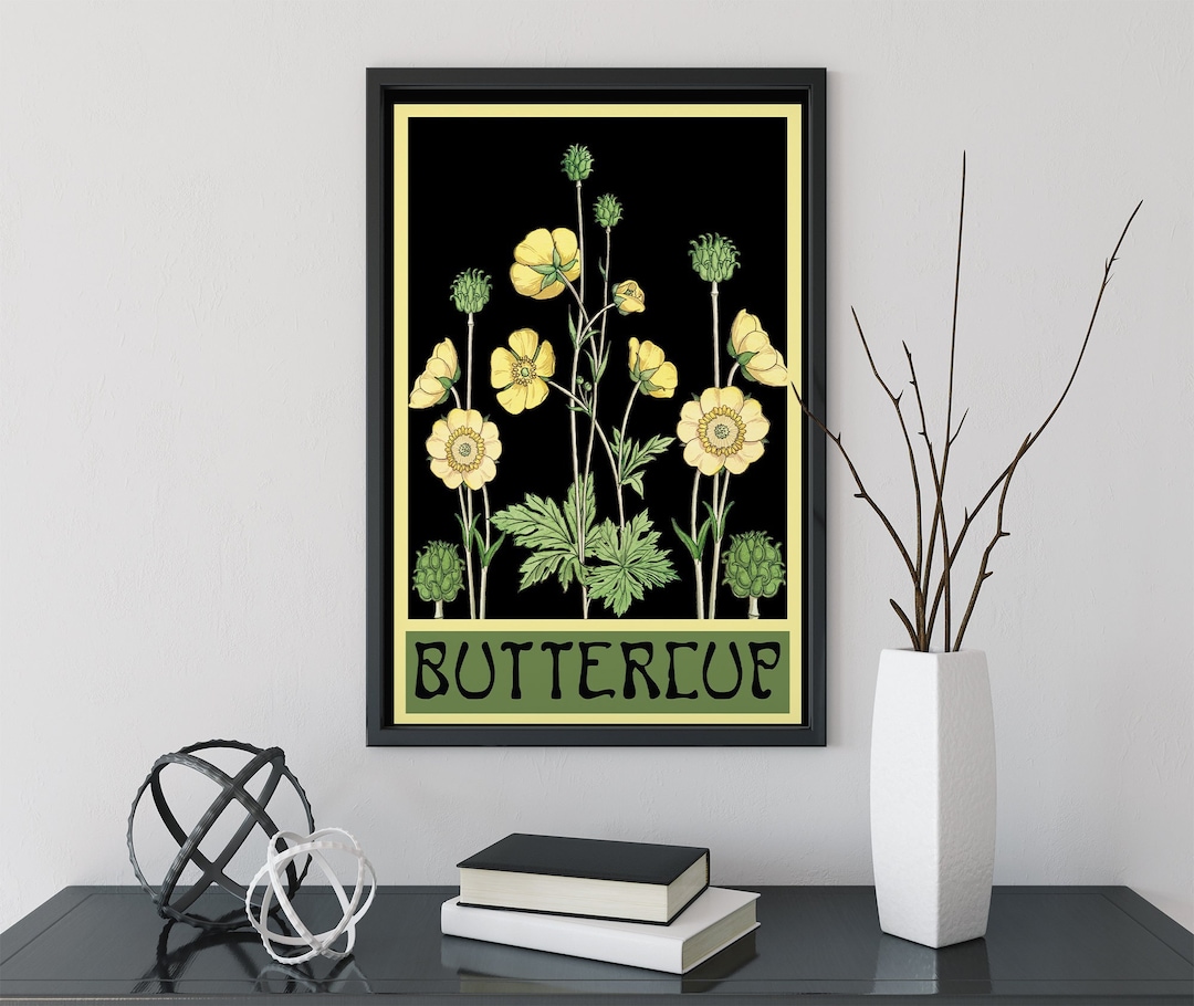 Art Nouveau Poster Floral Print Bohemian Print Large Artwork - Buttercups Vintage by DesignBohemian